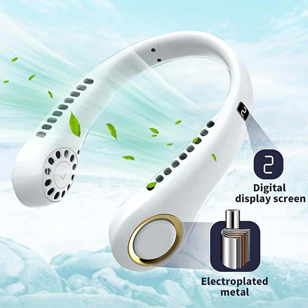 🌀 Con nuestro Ventilador Personal Portátil, olvídate de los días calurosos. 🌬️💨 Simplemente colócalo alrededor de tu cuello y disfruta de un agradable flujo de aire en tu rostro y nuca.