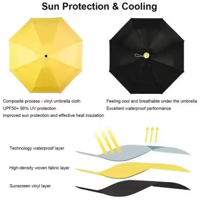 Su tela bloquea rayos UV mientras te mantiene seco en tormentas inesperadas.